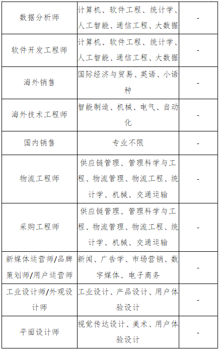 招聘岗位及专业: